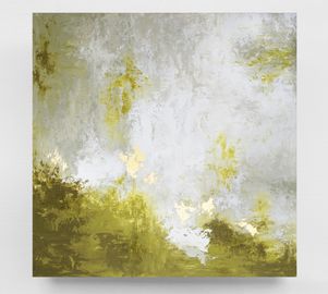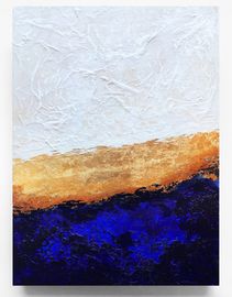 Alyson creates pieces using two distinct mediums; acrylic paint on canvas with texture and gold or silver leaf, as well as ink, paint and resin on wood panel. Both mediums have a flow to them that emulate nature and show Alyson's definitive style. The textural aspects of her acrylic paintings evoke a three dimensional space that feels like a cavern or mountain scape. Whereas the resin pieces reflect the light on their shiny glasslike finish and allude to a body of water or icy terrain.