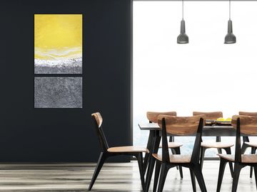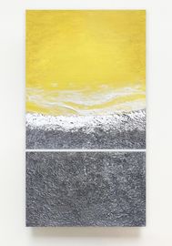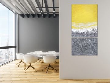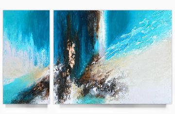 2 panels painting - Acrylic paint, heavy texture, metallic paint, acrylic glaze and sterling silver leaf on stretched canvas
